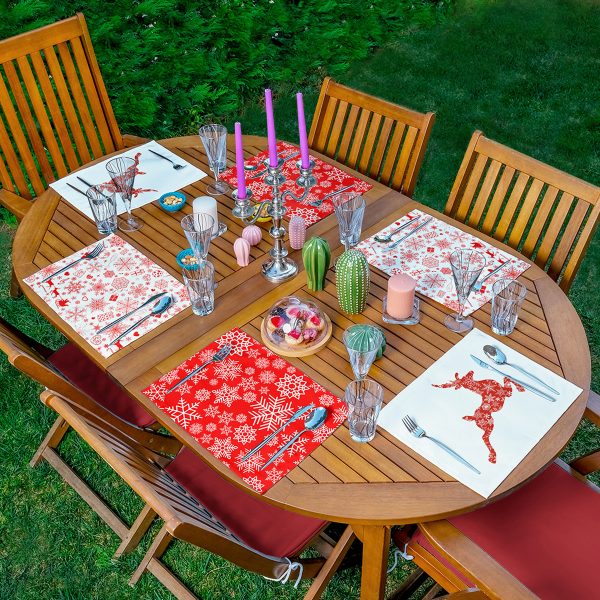 6’lı Kırmızı Geometrik Çizimli Amerikan Servis Seti