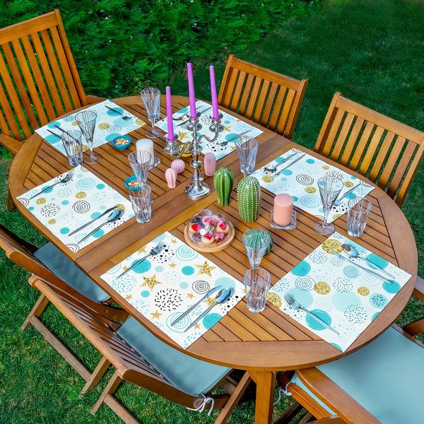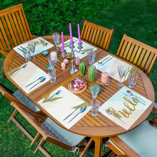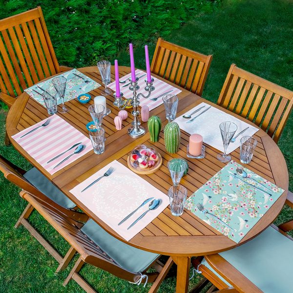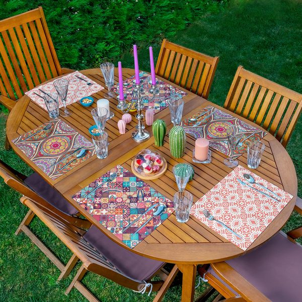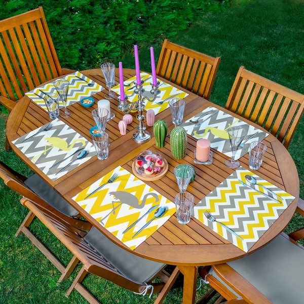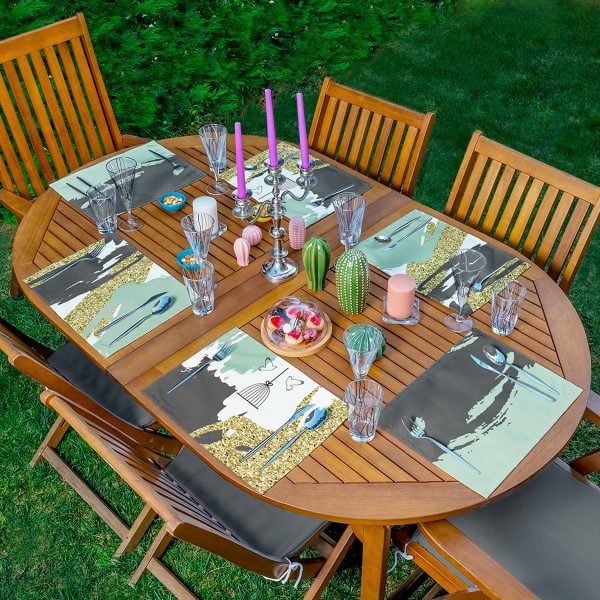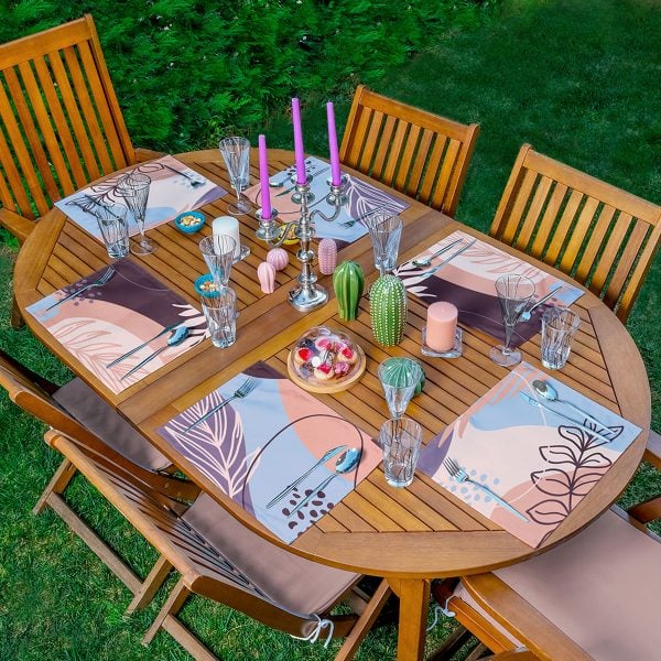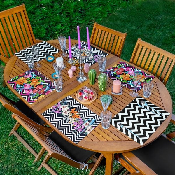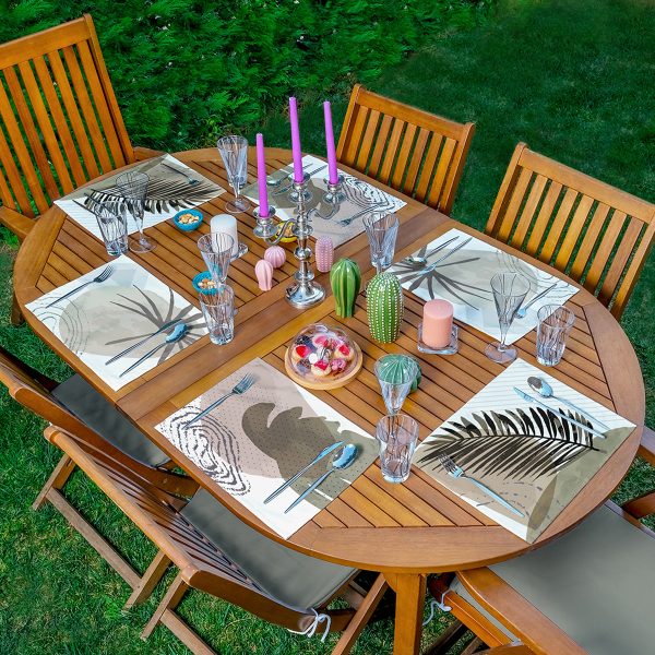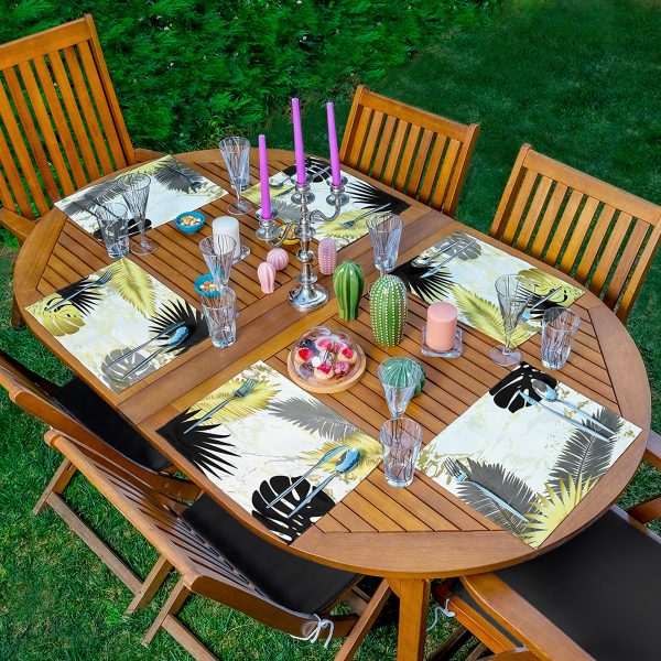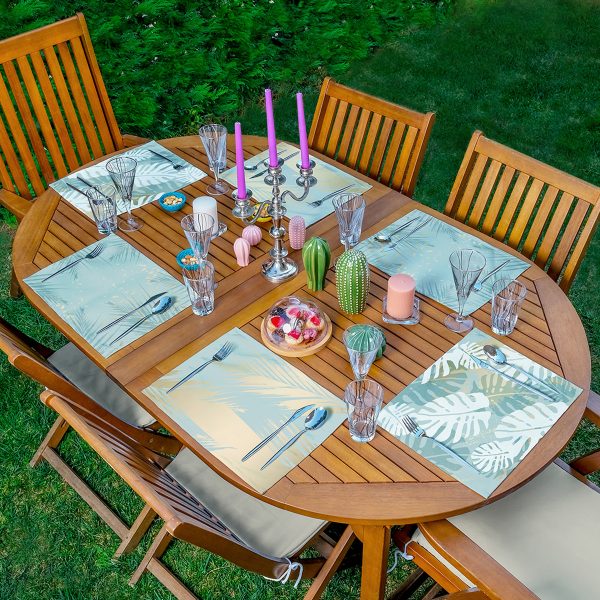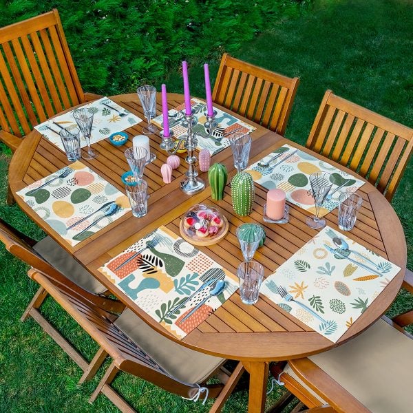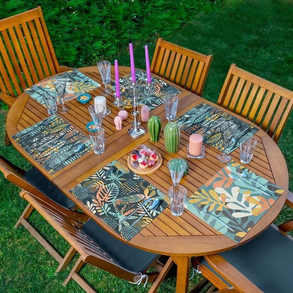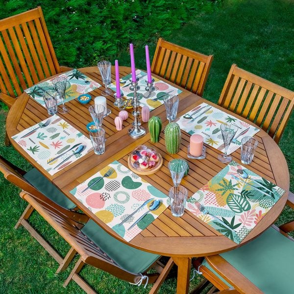 6’lı Renkli Tropik Yaprak Motifli Amerikan Servis Seti