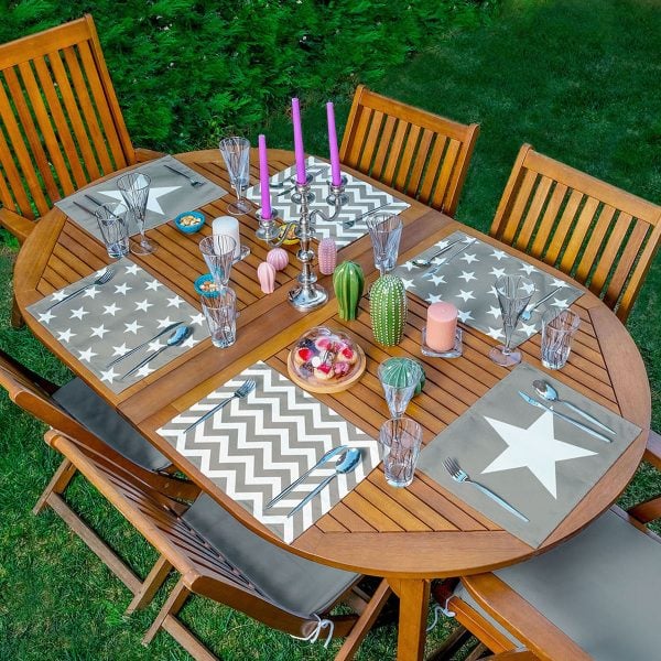 6’lı Gri Zigzag & Yıldız Tasarımlı Amerikan Servis Seti
