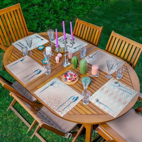 6’lı Pastel Renkli Yaprak Çizimli Amerikan Servis Seti