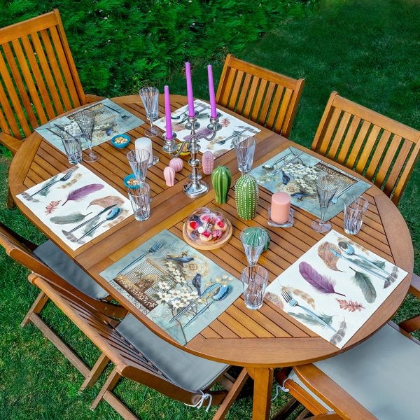 6’lı Renkli Tüy & Kuş Motifli Amerikan Servis Seti