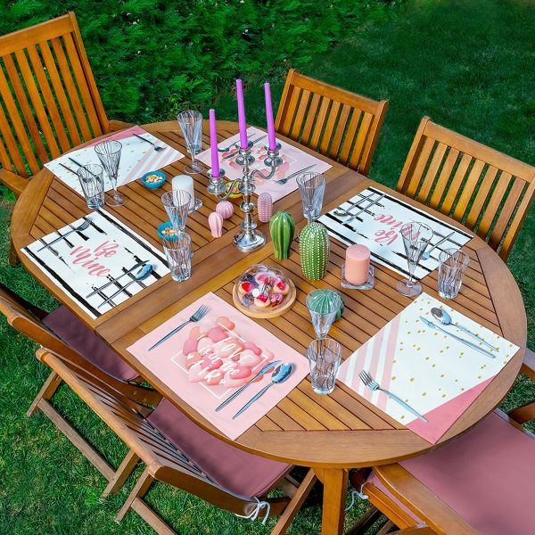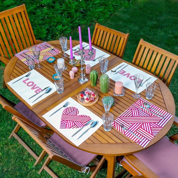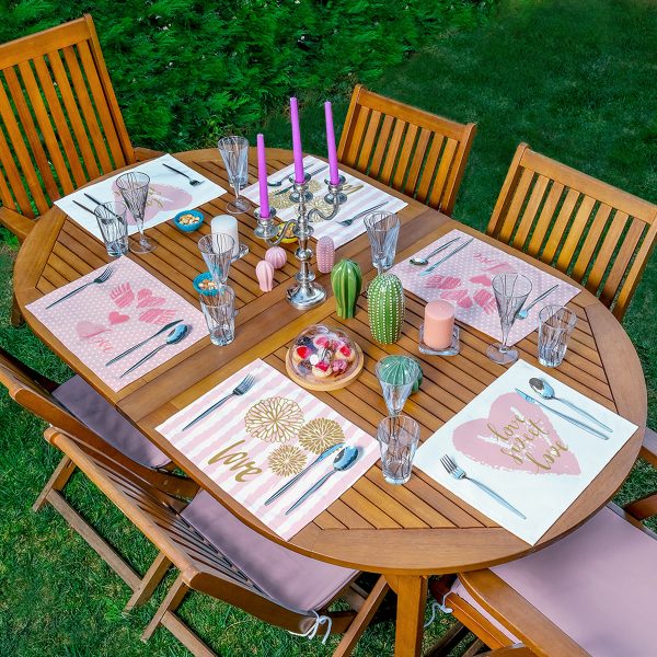 6’lı Pembe Love Desenli Amerikan Servis Seti