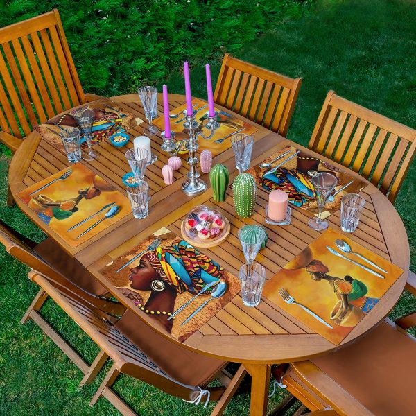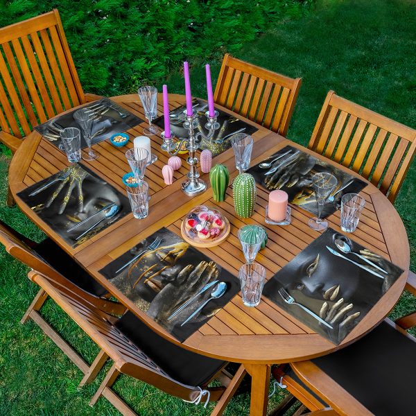 6’lı Gold Detaylı Siyahi Kadın Temalı Amerikan Servis Seti