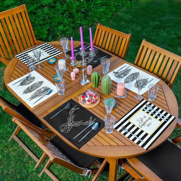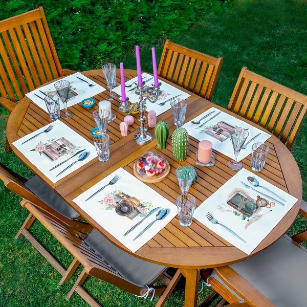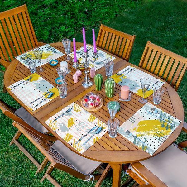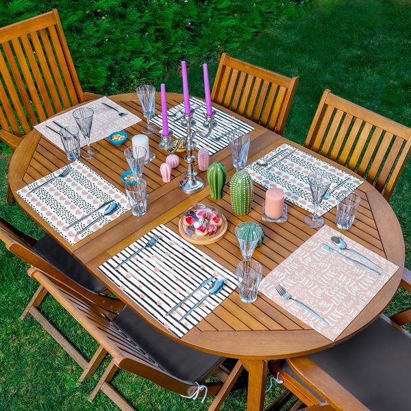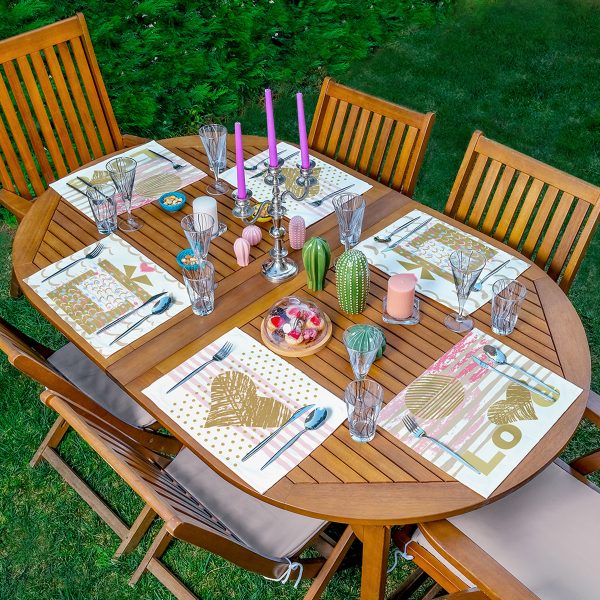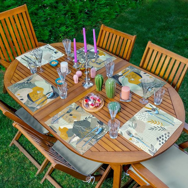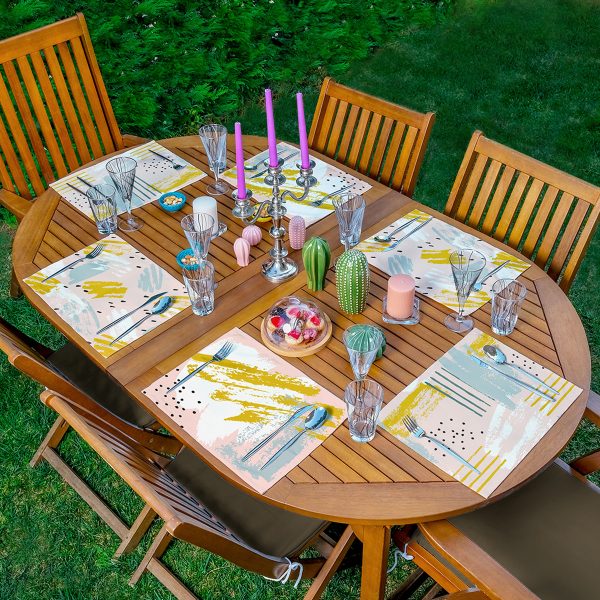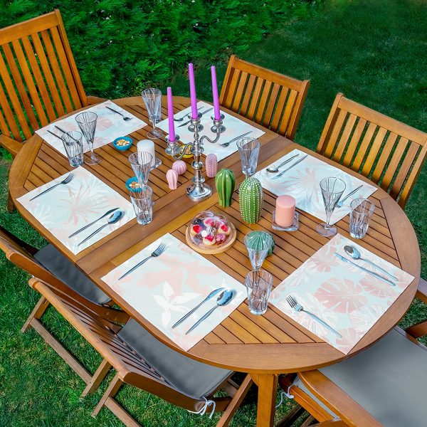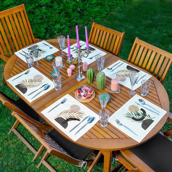 6’lı Soft Renkli Tropik Yaprak Motifli Amerikan Servis Seti
