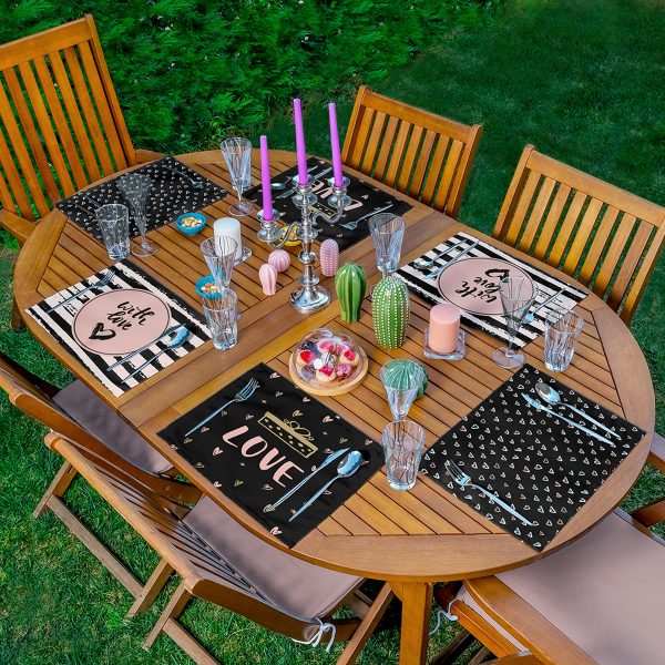 6’lı Siyah Love Motifli Aşk Temalı Amerikan Servis Seti