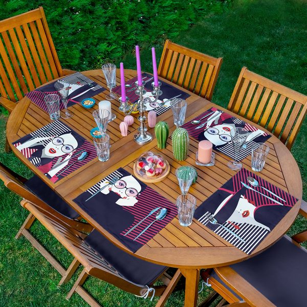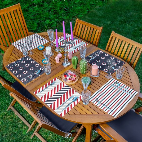 6’lı Bordo & Laciver Denizci Temalı Amerikan Servis Seti