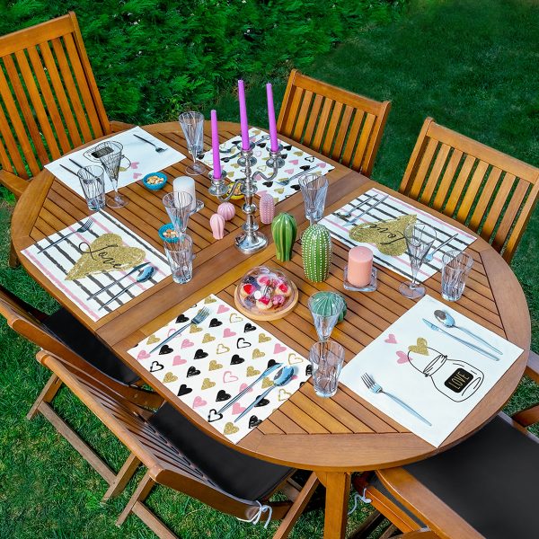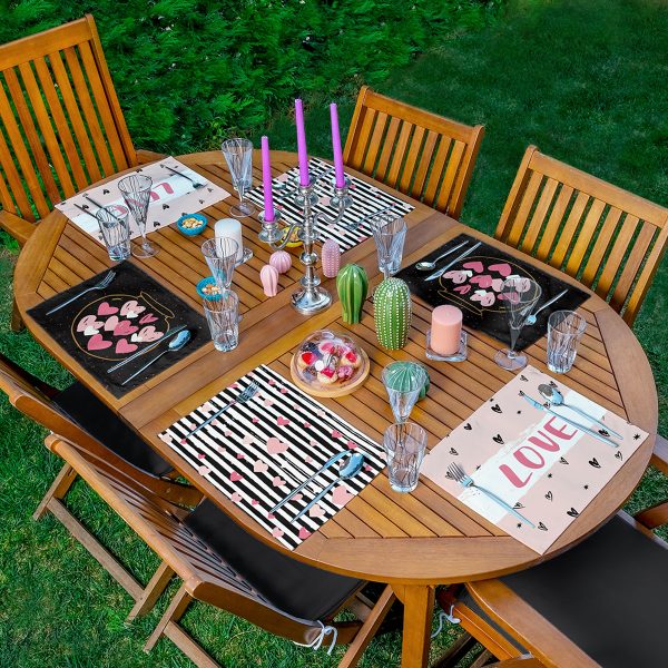 6’lı Renkli Love Tasarımlı Amerikan Servis Seti