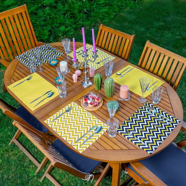 6’lı Sarı Laciver Zigzag Tasarımlı Amerikan Servis Seti