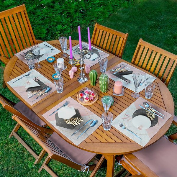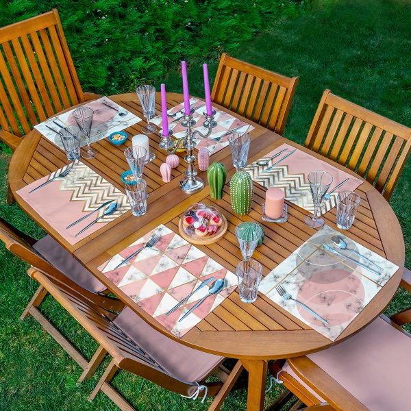 6’lı Pembe & Mermer Desen Tasarımlı Amerikan Servis Seti