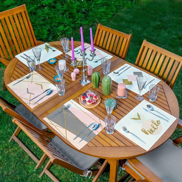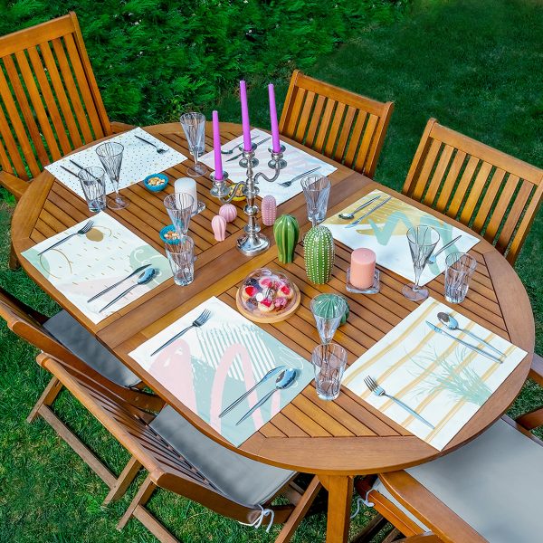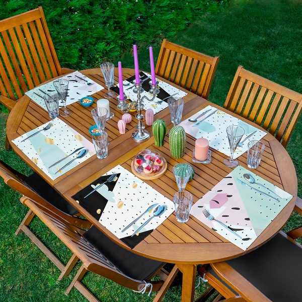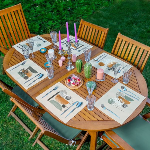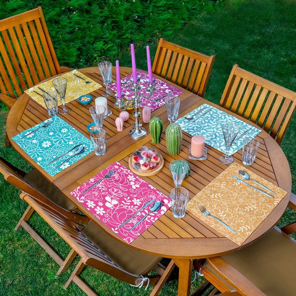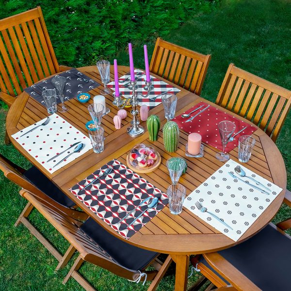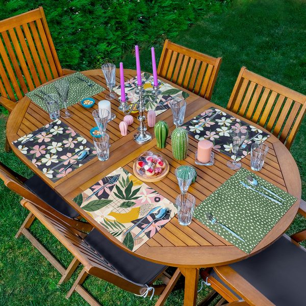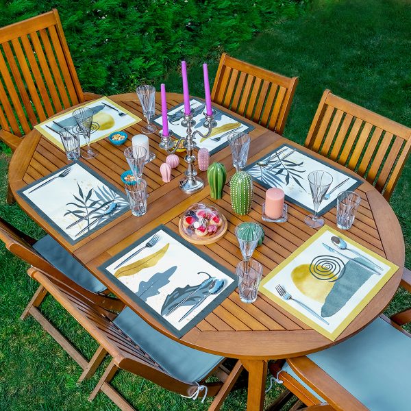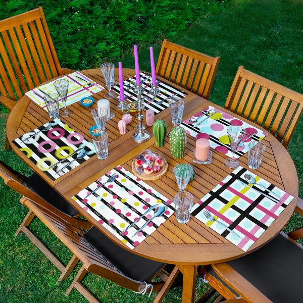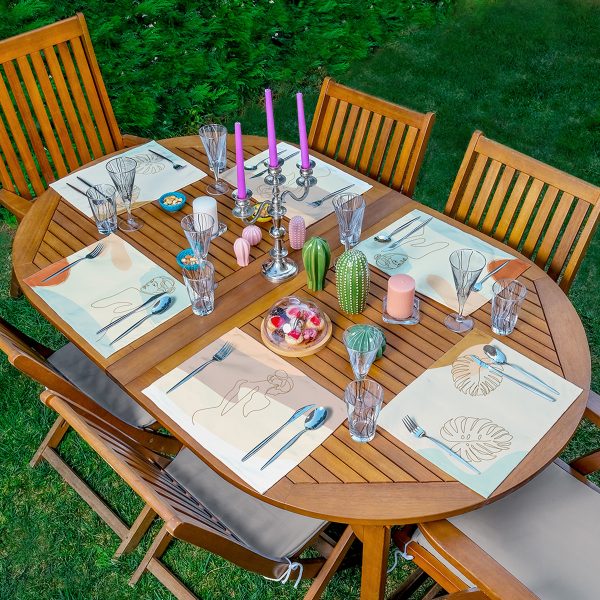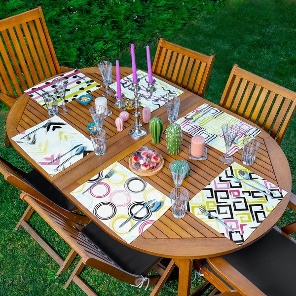 6’lı Renkli Özel Tasarım Çizimler Amerikan Servis Seti