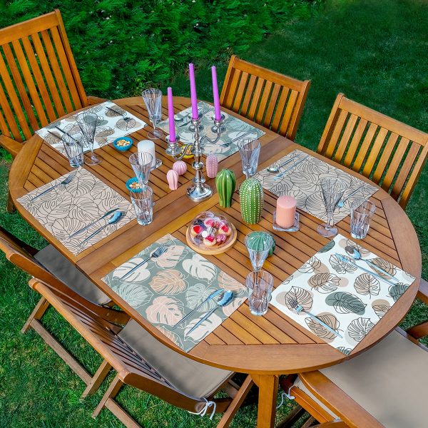 6’lı Renkli Yaprak Tasarımlı Amerikan Servis Seti