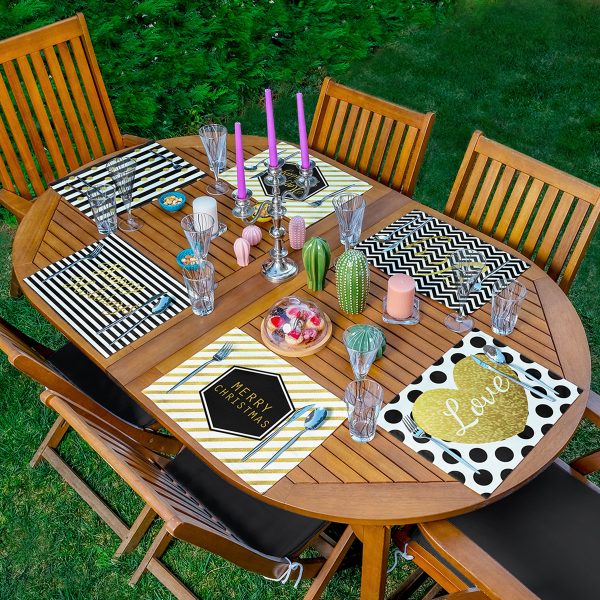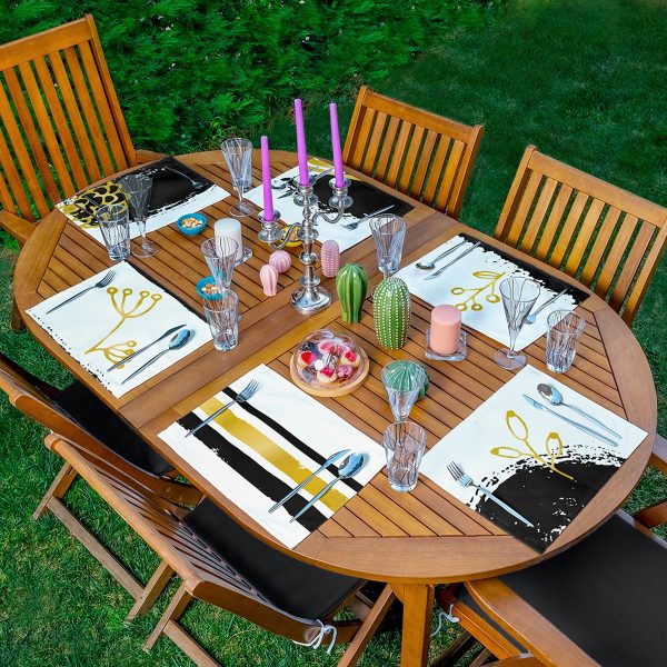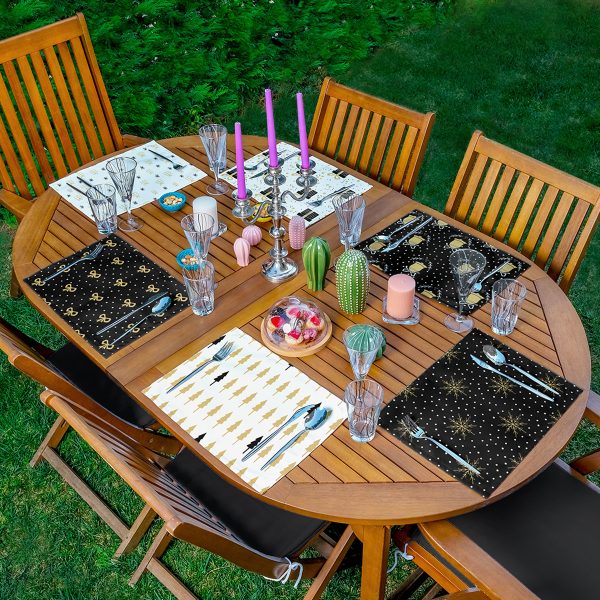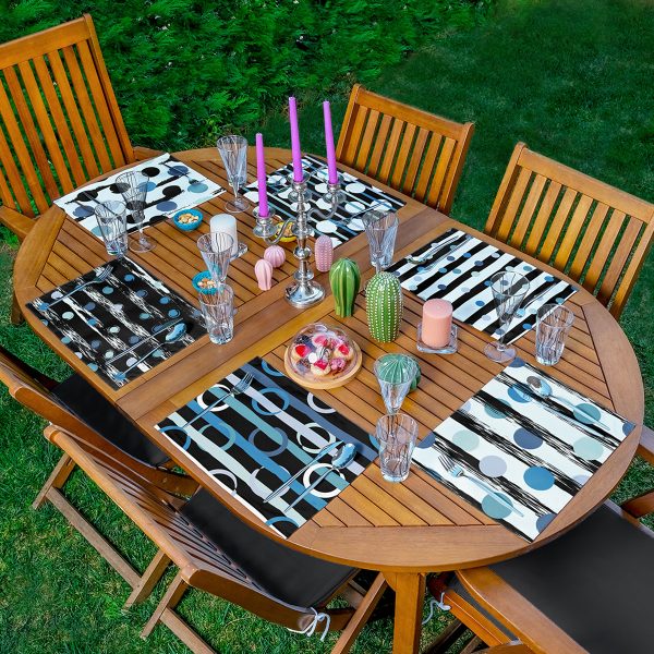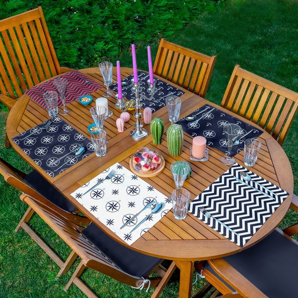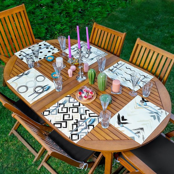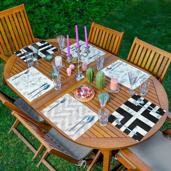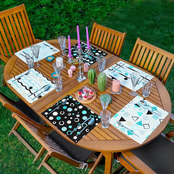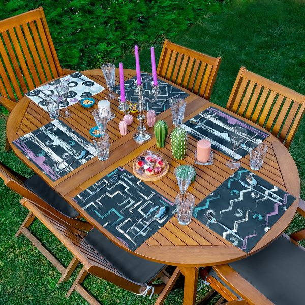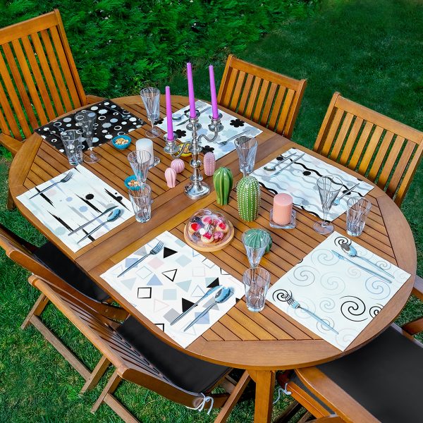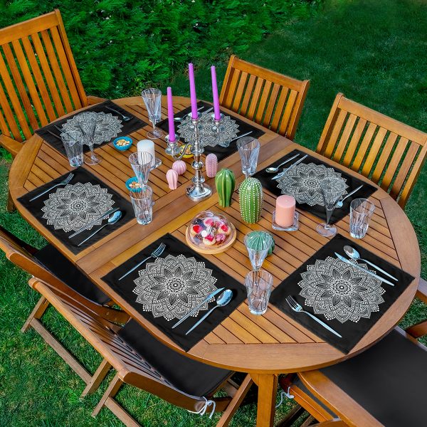 6’lı Siyah Beyaz Mandala Özel Tasarım Amerikan Servis Seti
