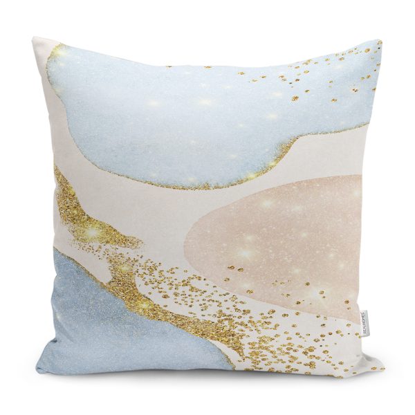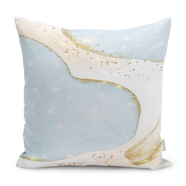 RealHomes Gold – Mavi Zeminde Altın Motifli Boyama Desenli Dijital Baskılı Yastık Kırlent Kılıfı
