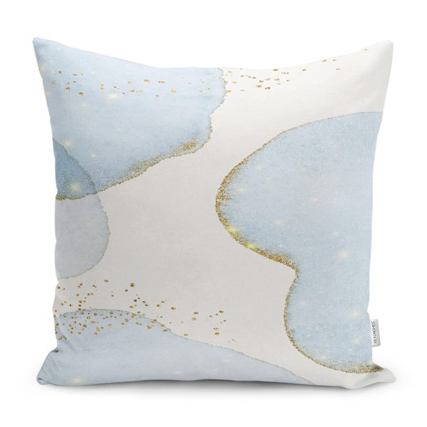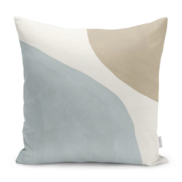 RealHomes Ekru – Mavi Zeminde Boyama Motifli Modern Sanat Desenli Dijital Baskılı Yastık Kırlent Kılıfı