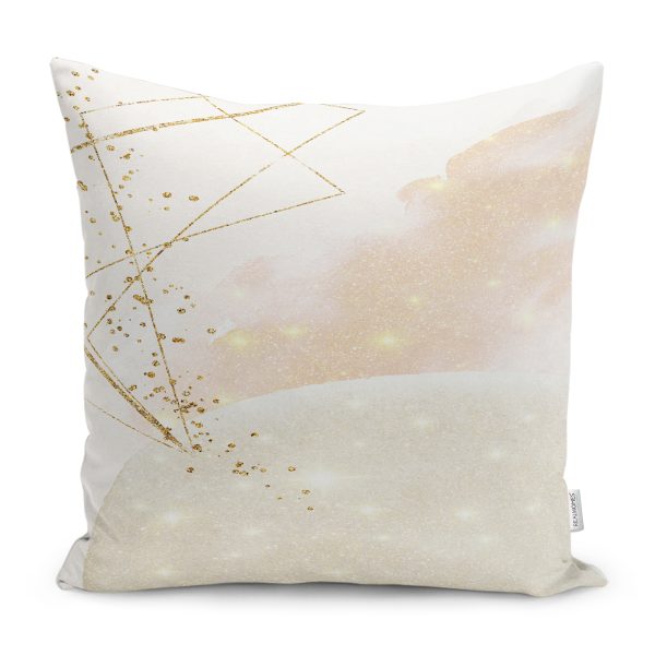 RealHomes Gold – Krem Zeminde Modern Motifli Abstract Desenli Dijital Baskılı Yastık Kırlent Kılıfı