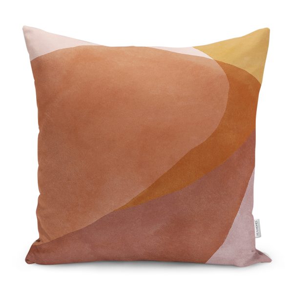 RealHomes Kahverengi – Kiremit Zeminde Modern Sanat Motifli Tablo Desenli Dijital Baskılı Yastık Kırlent Kılıfı