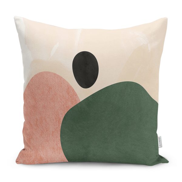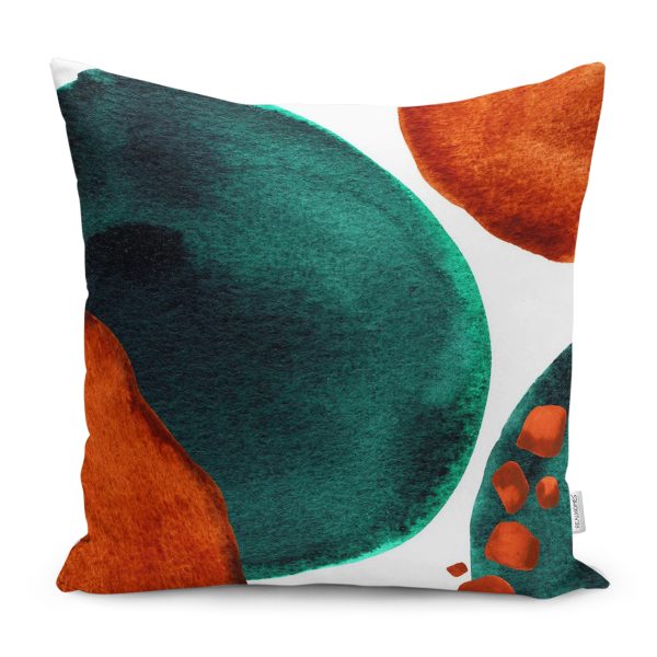 RealHomes Krem – Yeşil Zeminde Soyut Motifli Boyama Desenli Dijital Baskılı Yastık Kırlent Kılıfı