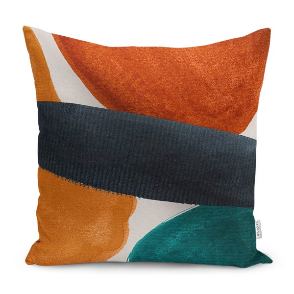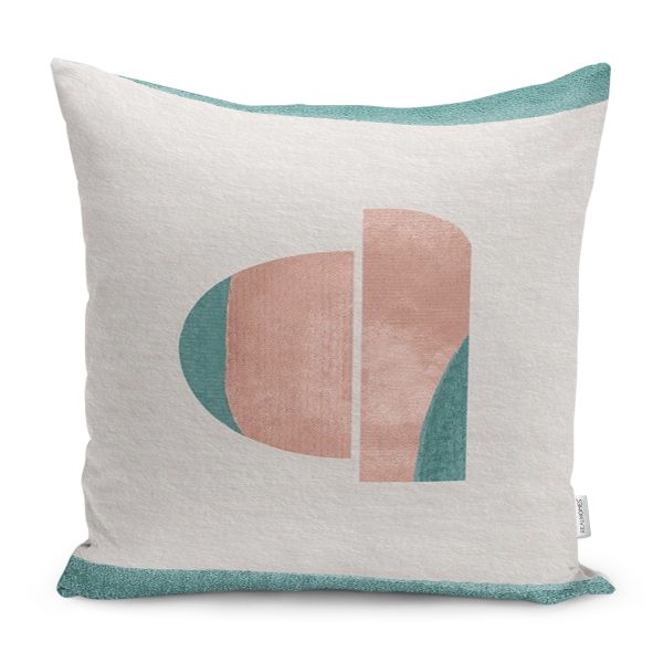RealHomes Turkuaz – Yavruağzı Zeminde Abstract Motifli Tablo Desenli Dijital Baskılı Yastık Kırlent Kılıfı