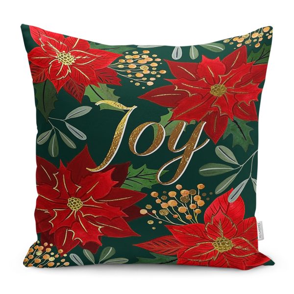 Realhomes Kırmızı Gül Desenli Joy Yazı Tasarımlı Yastık Kırlent Kılıfı