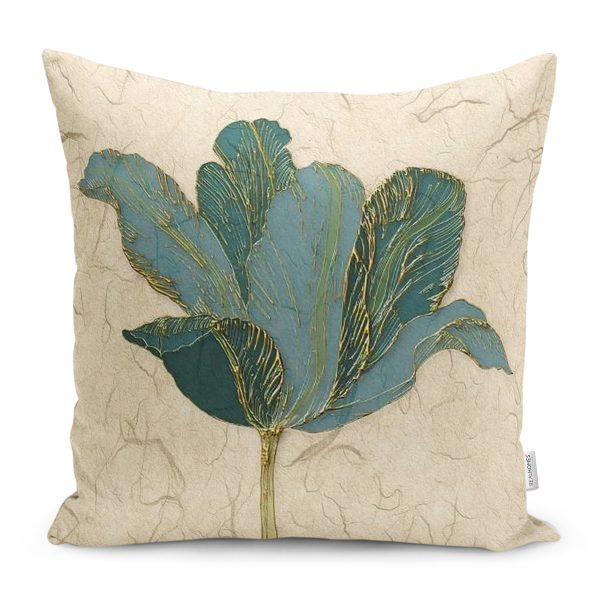 RealHomes Turkuaz – Lacivert Zeminde Guaj Boya Motifli Tablo Desenli Dijital Baskılı Yastık Kırlent Kılıfı