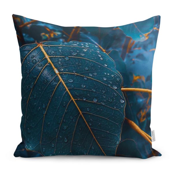 Realhomes 3D Yağmur Damlacıkları Yaprak Tasarımlı Dijital Baskılı Yastık Kırlent Kılıfı