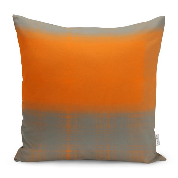 Realhomes Gri Zemin Turuncu Düz Renkli Çizgili Özel Tasarım Yastık Kırlent Kılıfı