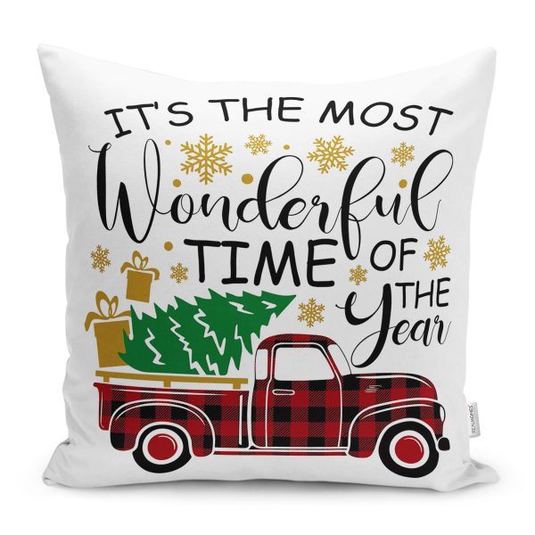 Realhomes Ekose Motifli Yılbaşı Tasarımlı Dijital Baskılı Yastık Kırlent Kılıfı