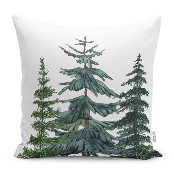 Realhomes Beyaz Zeminli Çam Ağaçları Özel Tasarımlı Dijital Baskılı Yastık Kırlent Kılıfı