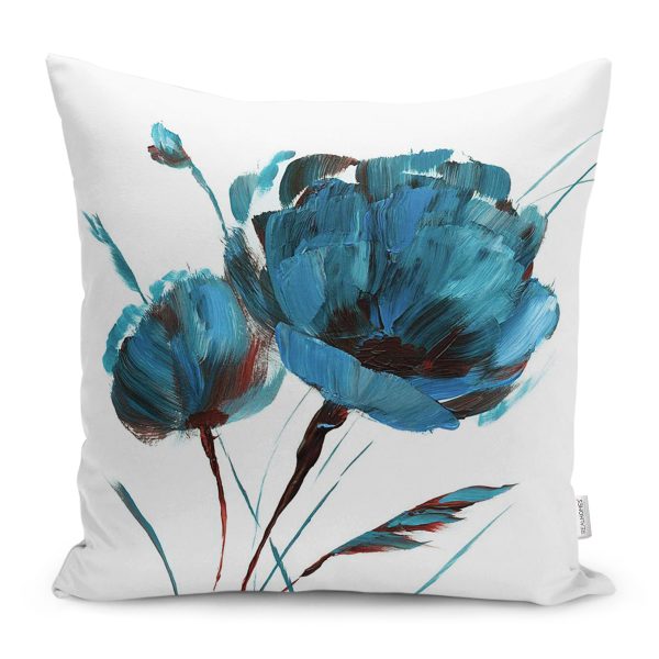 Realhomes Guaj Boya Çizimli Mavi Gül Tasarımlı Dijital Baskılı Yastık Kırlent Kılıfı