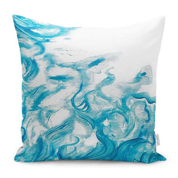 Realhomes Mavi Akrilik Soyut Tasarımlı Dijital Baskılı Yastık Kırlent Kılıfı