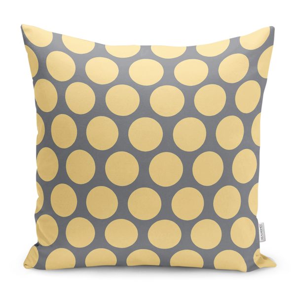 Realhomes Gri Zemin Sarı Puantiyeli Dijital Baskılı Yastık Kırlent Kılıfı