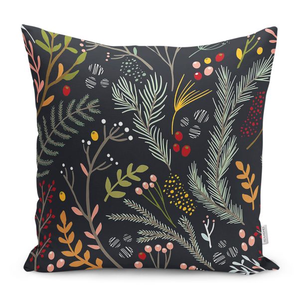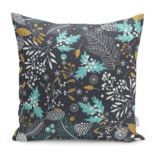 Realhomes Renkli Yapraklar Kar Taneleri Dijital Baskılı Yastık Kırlent Kılıfı