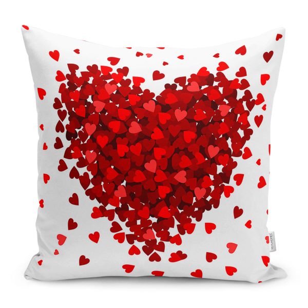 Realhomes Beyaz Zeminli 3D Kalp Temalı Aşk Tasarımlı Yastık Kırlent Kılıfı