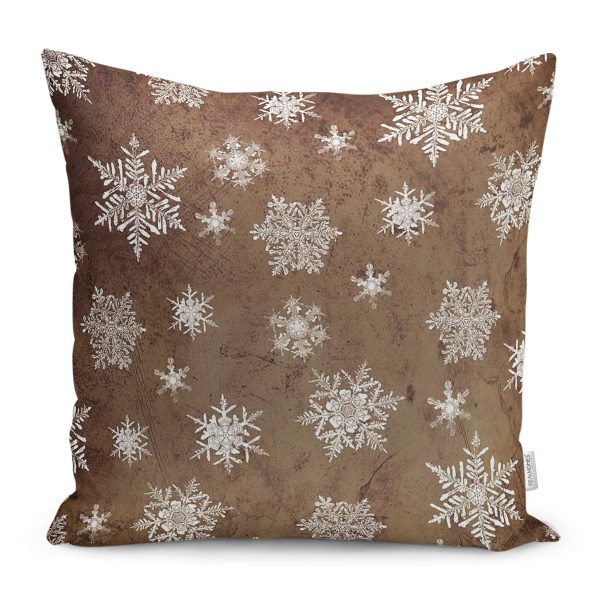 Realhomes Kahverengi Zeminli Kar Taneleri Özel Tasarım Dijital Baskılı Yastık Kırlent Kılıfı