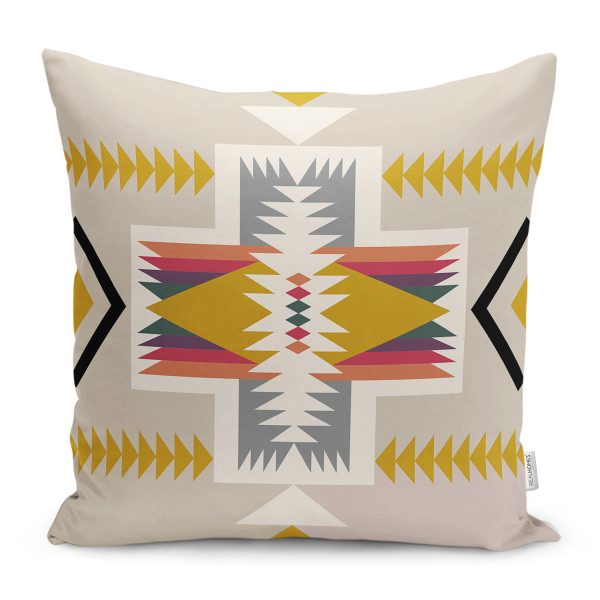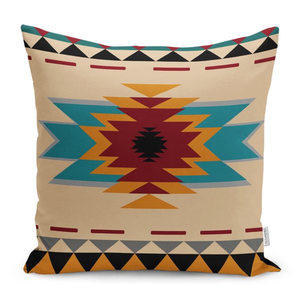 Realhomes Krem Zemin Renkli Geometrik Desen Etnik Motifli Yastık Kırlent Kılıfı