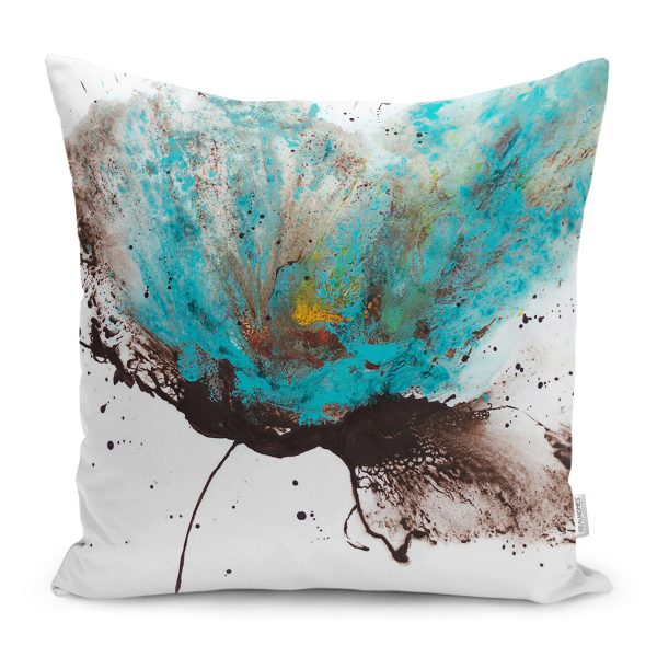 RealHomes Kahverengi- Mavi Zeminde Kanvas Motifli Modern Sanat Desenli Dijital Baskılı Yastık Kırlent Kılıfı