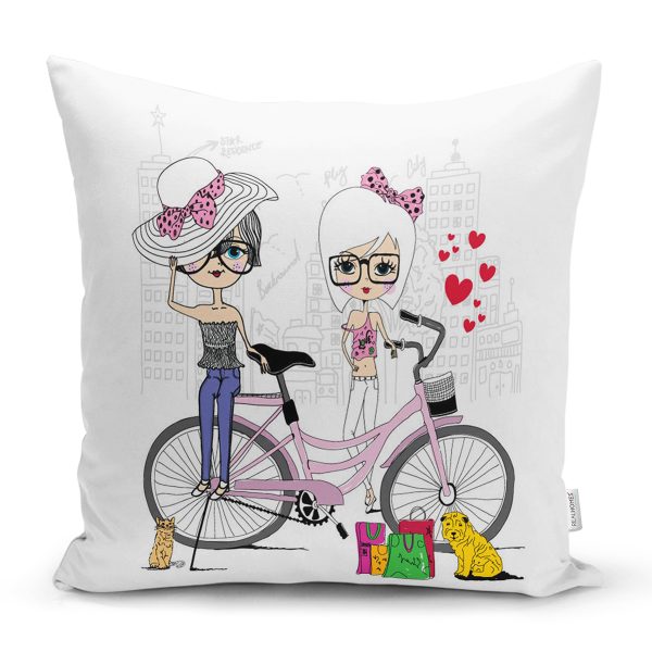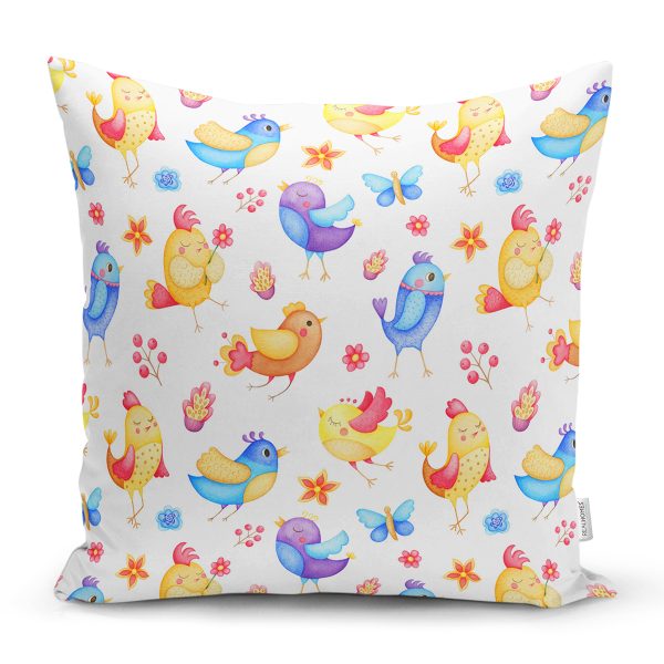 Realhomes Mutlu Kuşlar Çizimli Özel Tasarım Dijital Baskılı Modern Yastık Kırlent Kılıfı