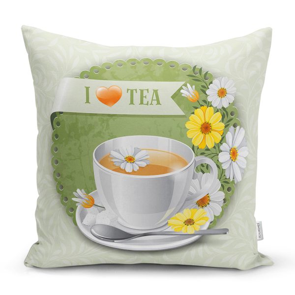Çay Saati Temalı Dijital Baskılı Dekoratif Modern Yastık Kırlent Kılıfı
