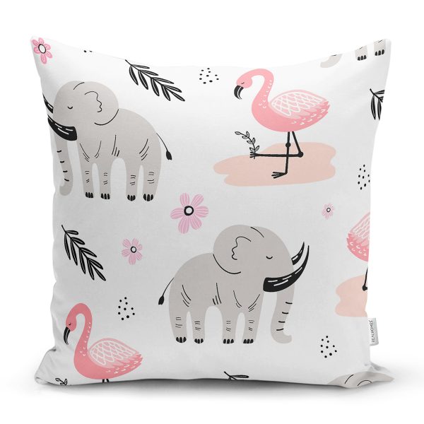 Flamingo Ve Fil Motifli Dijital Baskılı Özel Tasarım Modern Yastık Kırlent Kılıfı
