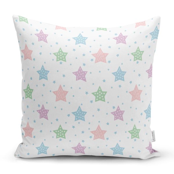 Beyaz Zemin Rengarenk Yıldız Motifli Dijital Baskılı Özel Tasarım Modern Yastık Kırlent Kılıfı
