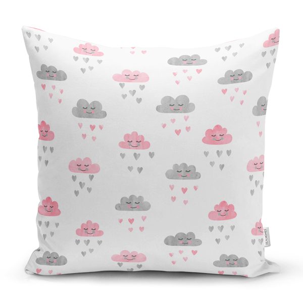 Sevimli Yağmur Bulutları Desenli Dijital Baskılı Özel Tasarım Modern Yastık Kırlent Kılıfı