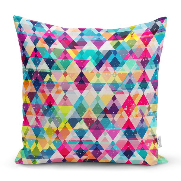 Modern Renkli Üçgen Tasarımlı Dijital Baskılı Modern Yastık Kırlent Kılıfı