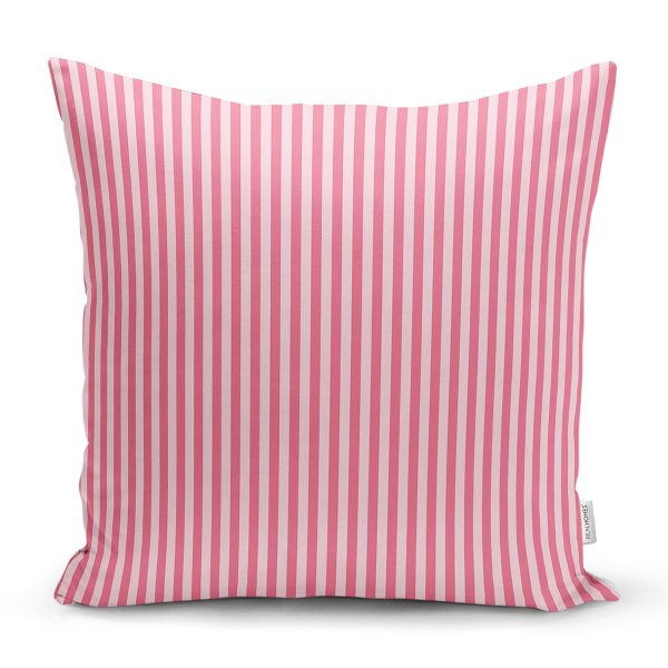 Pembe Çizgili Zeminde Şirin Ayıcık Temalı Dijital Baskılı Özel Tasarım Modern Yastık Kırlent Kılıfı
