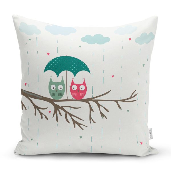 Sevimli Baykuşlar Dijital Baskılı Dekoratif Yastık Kırlent Kılıfı