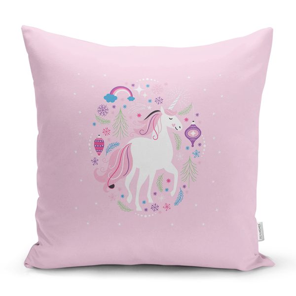 Realhomes Pembe Zeminde Unicorn Sevimli At Modern Yastık Kırlent Kılıfı