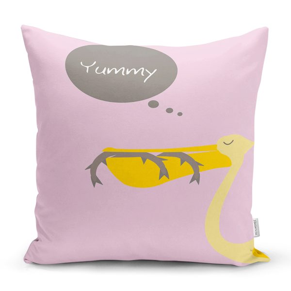 Pembe Zeminde Leylek Motifli Özel Tasarım Çocuk Odası Yastık Kırlent Kılıfı