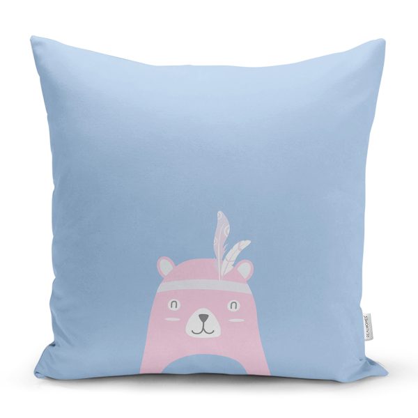 Sevimli Ayıcık Ve Tavşan Motifli Dijital Baskılı Özel Tasarım Modern Yastık Kırlent Kılıfı