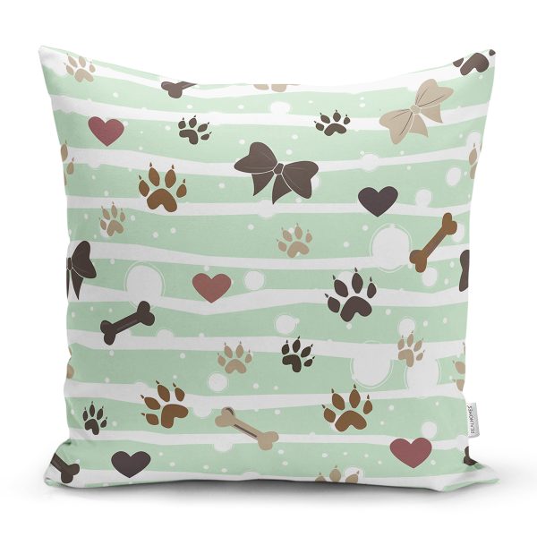 Yeşil Çizgili Zeminde Pati İzli Dijital Baskılı Modern Yastık Kırlent Kılıfı