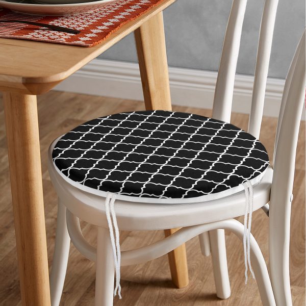 Siyah Zeminde Beyaz Modern Desenli Yuvarlak Fermuarlı Sandalye Minderi