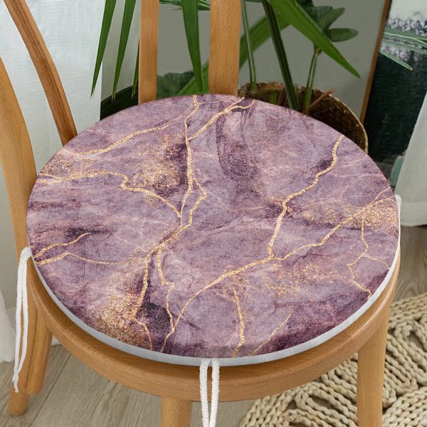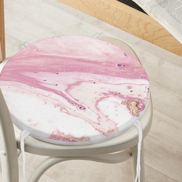 Pembe Beyaz Mermer Desenli Dijital Baskılı Yuvarlak Fermuarlı Sandalye Minderi